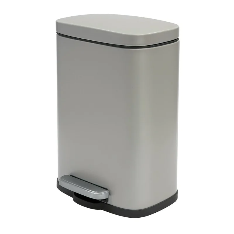 La linea Axin è pensata per chi cerca accessori da bagno pratici, durevoli e dal design essenziale, perfetti per ambienti moderni e curati nei dettagli. Questa pattumiera dal design rettangolare da 5 litri è realizzata in acciaio tortora anti-impronta, con finitura opaca, elegante e sempre ordinata al tatto e alla vista. Il coperchio con chiusura rallentata evita rumori bruschi, mentre il pratico pedale e il secchio interno estraibile in plastica riciclata lo rendono facile da usare e da pulire.