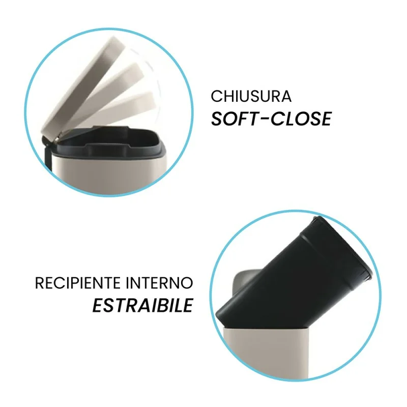 Cestino portarifiuti 5 litri a pedale in acciaio tortora con chiusura rallentata e recipiente interno estraibile Linea Axin