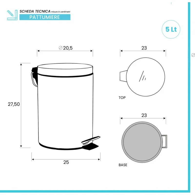 Pattumiera bagno in acciaio cromato 5 Litri salvaspazio