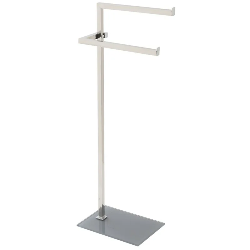 Piantana porta asciugamani in acciaio Cromo con base in Vetro Temperato Grigio