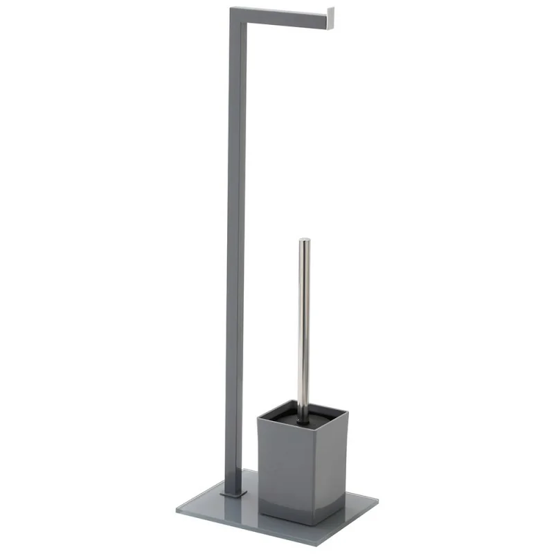 Piantana porta scopino e porta rotolo in acciaio Grigio con base in Vetro Temperato