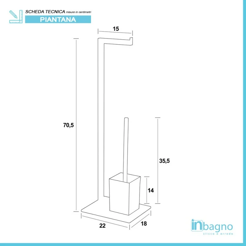 • Tipologia:piantana da terra con porta rotolo e porta scopino
