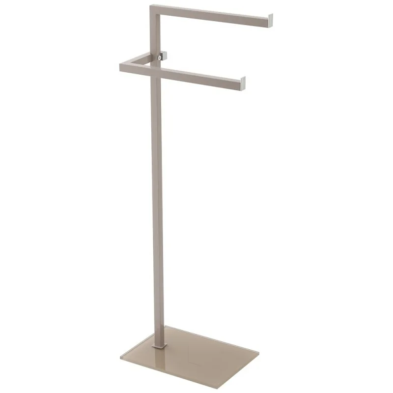 Piantana porta asciugamani in acciaio Cromo Tortora con base in Vetro Temperato