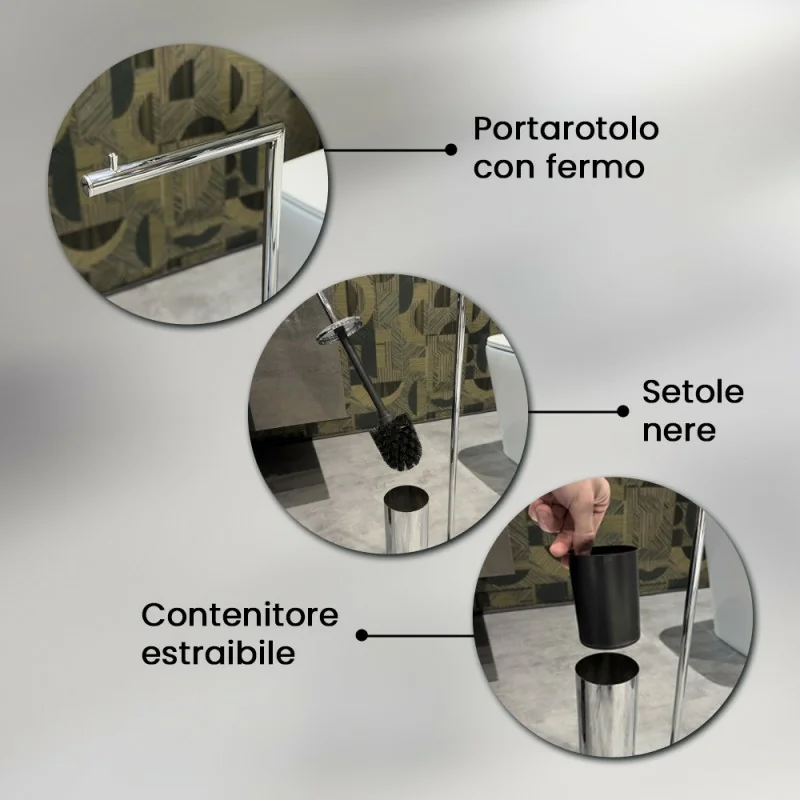Piantana porta rotolo e porta scopino d’appoggio caratteristiche tecniche: