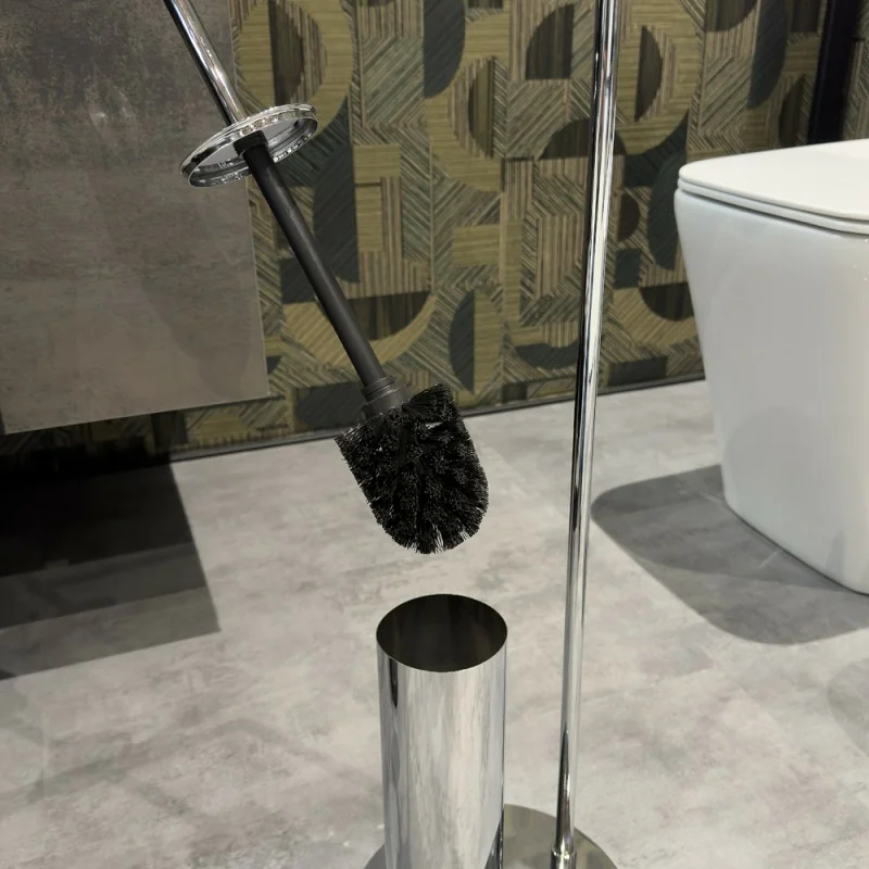 Piantana porta rotolo e porta scopino da appoggio in acciaio cromo Style