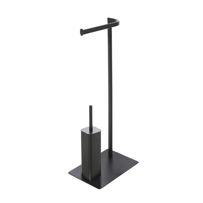 Piantana porta rotolo e scopino da appoggio in acciaio nero opaco Fusion