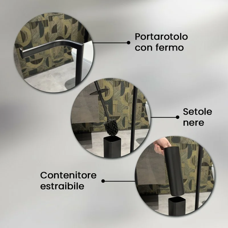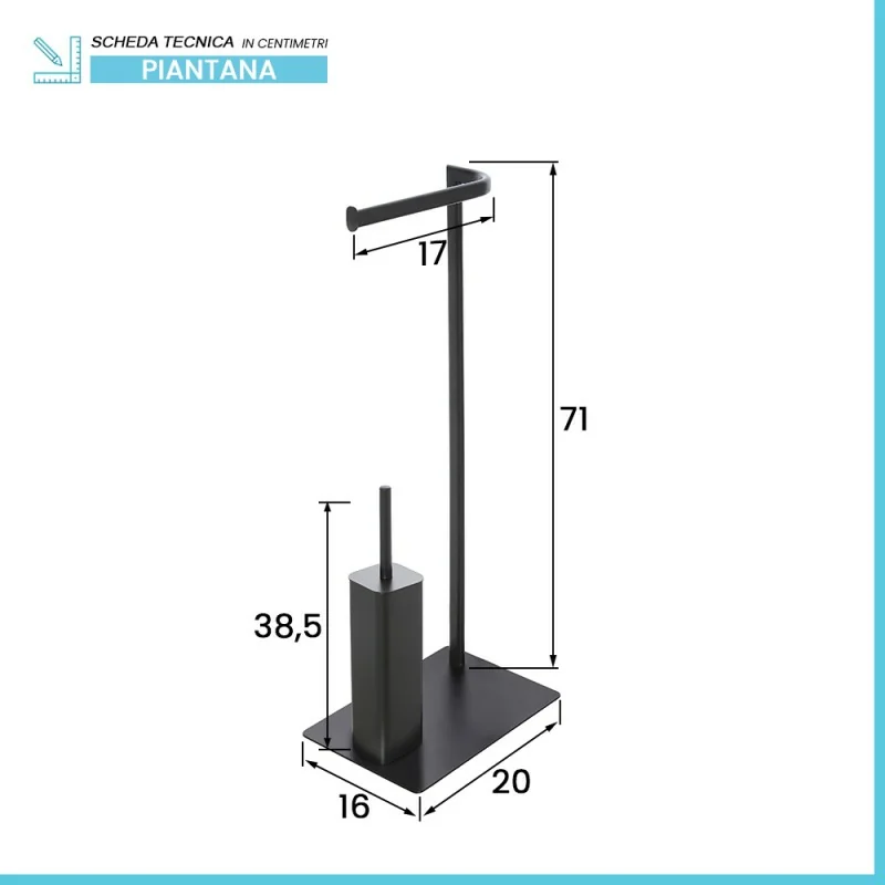 Piantana porta rotolo e porta scopino d’appoggio caratteristiche tecniche: