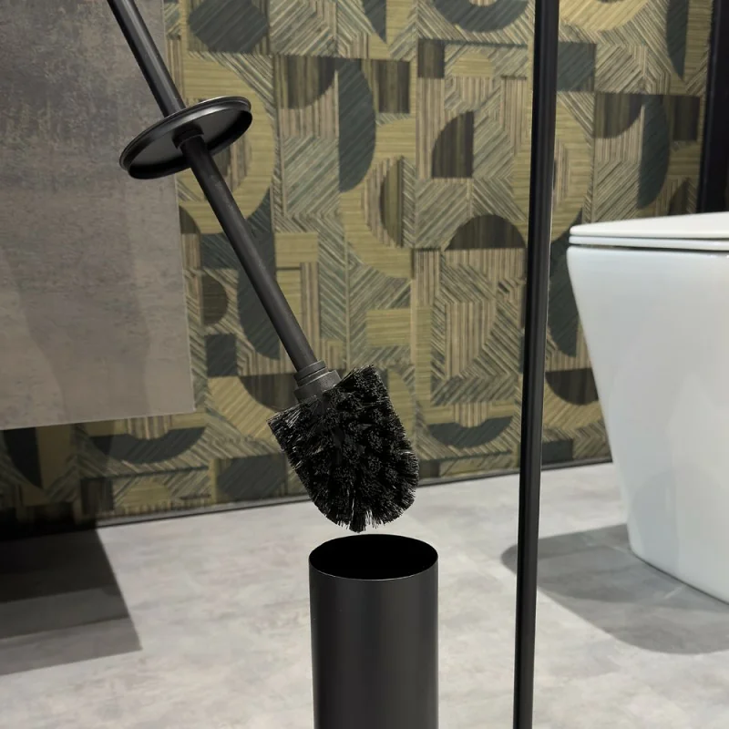 Piantana porta rotolo e scopino da appoggio in acciaio nero opaco Style