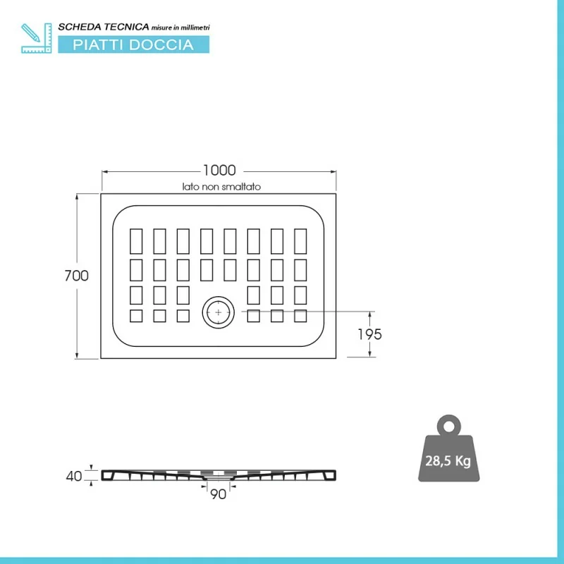 • Tipologia:piatto doccia rettangolare;