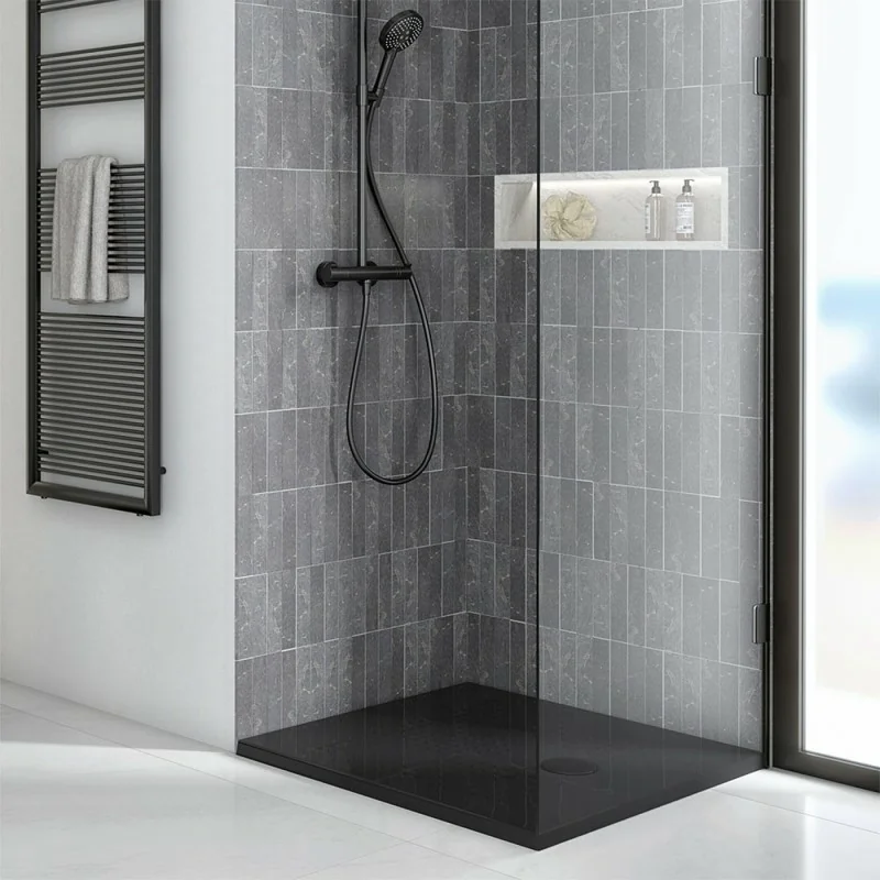 Piatto doccia quadrato 80x80 H3 cm in ceramica nero opaco con antiscivolo  Ruy