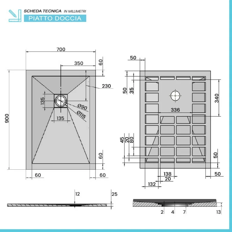 Il piatto doccia è facilmente tagliabile tramite l'uso di un disco a punta diamantata. Il taglio può essere realizzato in diversi modi senza perdere le pendenze,quindi senza ridurre la capacità di scarico del tuo piatto doccia.