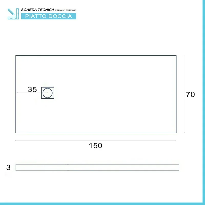 Piatto doccia resina 70x150 cm su misura rettangolare con spessore 3 cm bianco pietra con griglia