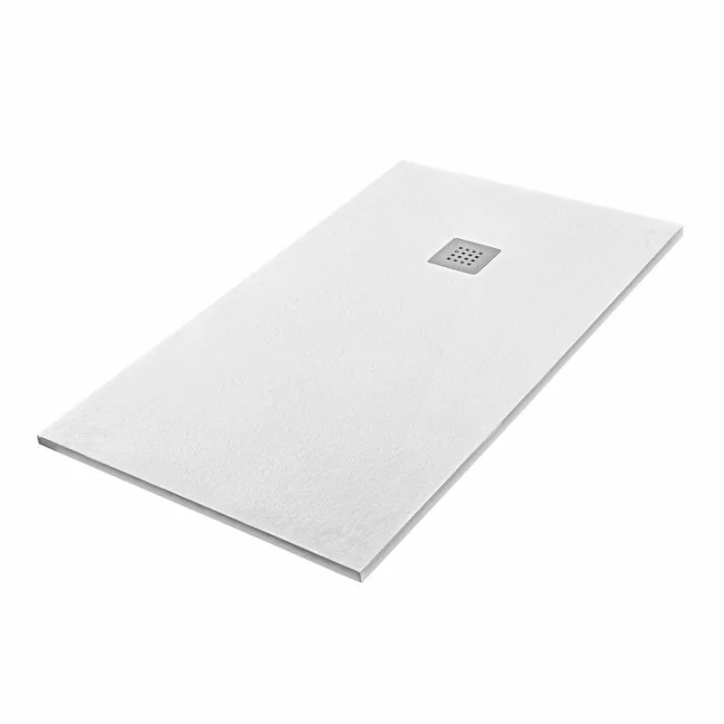 Piatto doccia resina 80x90 cm riducibile con spessore 3 cm bianco effetto pietra completo di griglia e piletta
