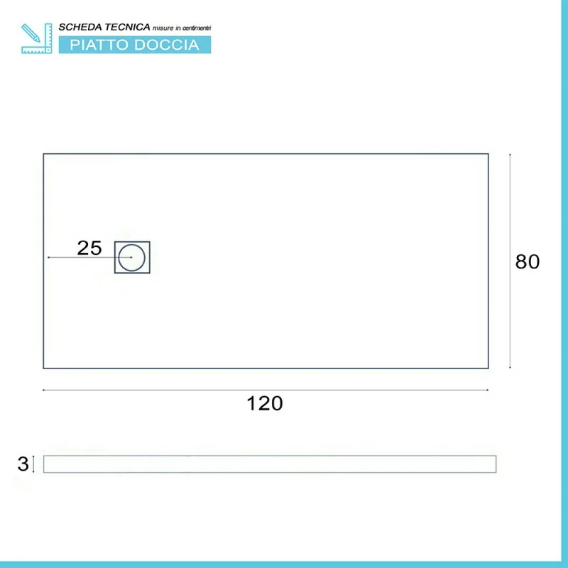 Piatto doccia resina 80x120 cm su misura rettangolare con spessore 3 cm pietra tortora completo di griglia e piletta