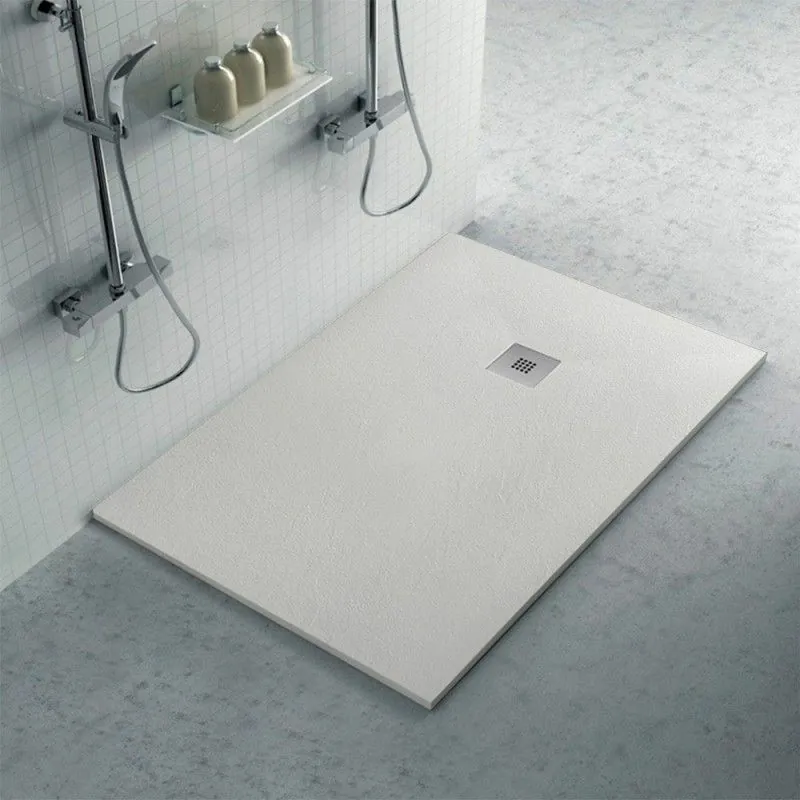 Piatto doccia 80x100 cm in resina filo pavimento con spessore di 3 cm ghiaccio effetto pietra completo di griglia e piletta