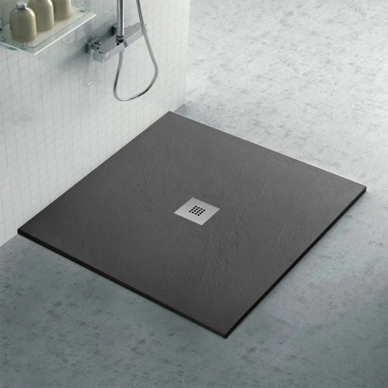 Piatto doccia resina 100x100 cm riducibile con spessore 3 cm effetto pietra ardesia completo di griglia e piletta