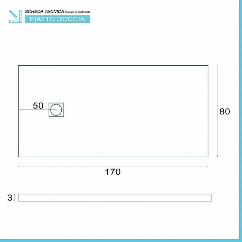 Piatto doccia resina 80x170 cm riducibile con spessore 3 cm effetto pietra ardesia completo di griglia e piletta