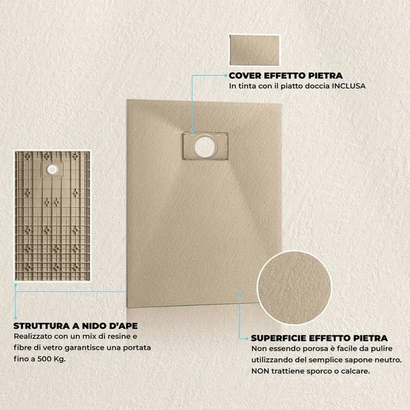 • INCLUDE la cover della piletta effetto pietra;