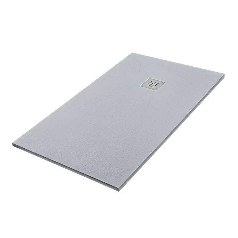 Piatto doccia resina 70x90 cm riducibile con spessore 3 cm grigio effetto pietra completo di griglia e piletta