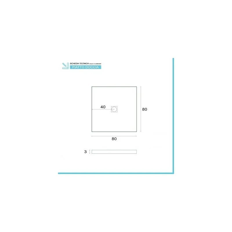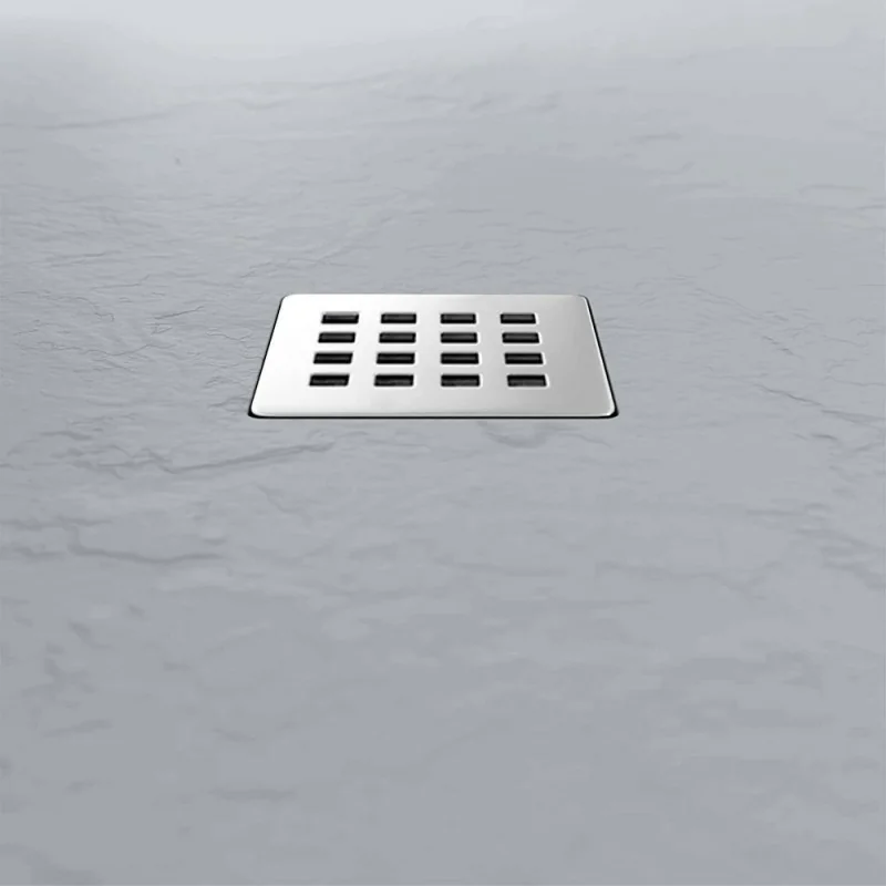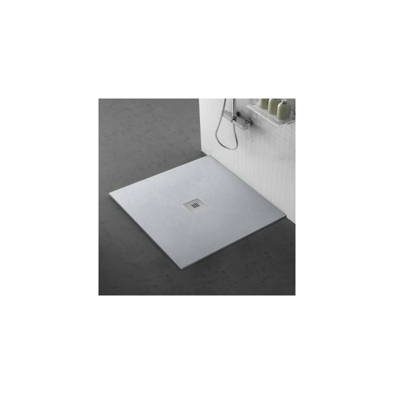 Piatto doccia resina quadrato 80x80 cm filo pavimento con spessore 3 cm grigio pietra completo di griglia e piletta
