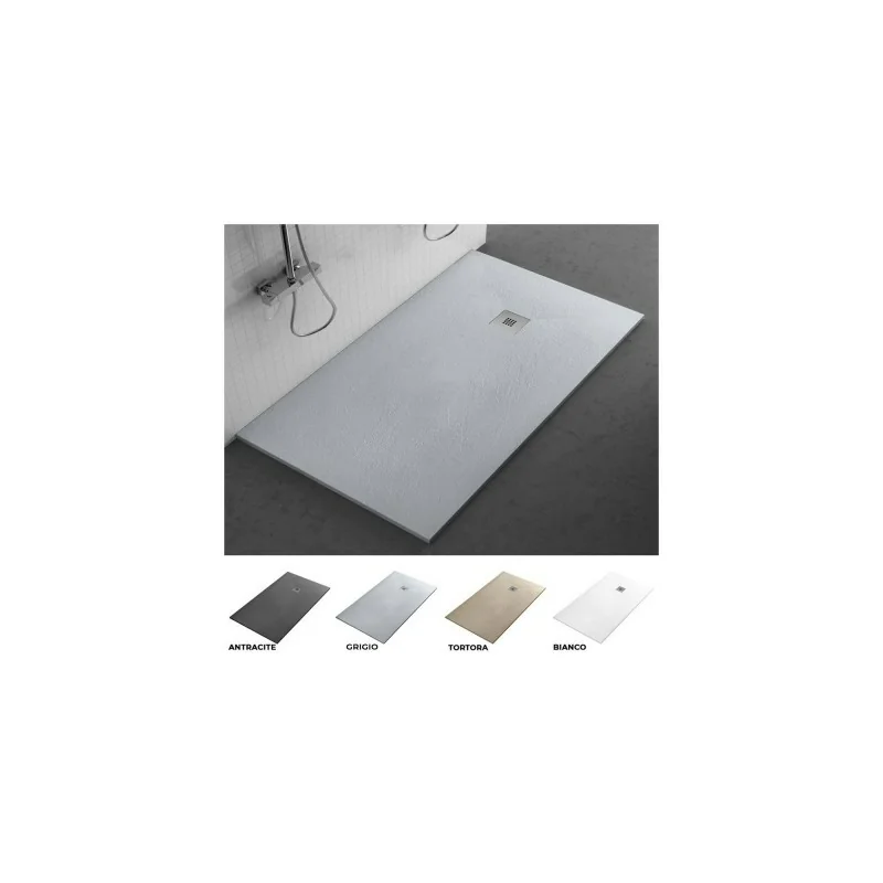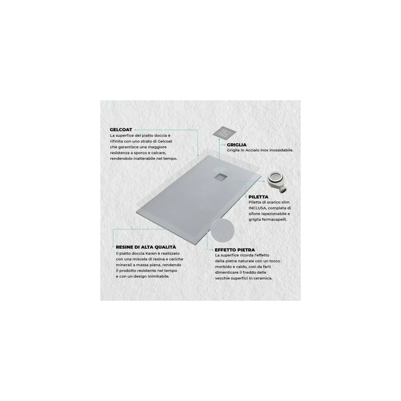 Piatto doccia resina quadrato 80x80 cm filo pavimento con spessore 3 cm grigio pietra completo di griglia e piletta Il piatto doccia Karen...