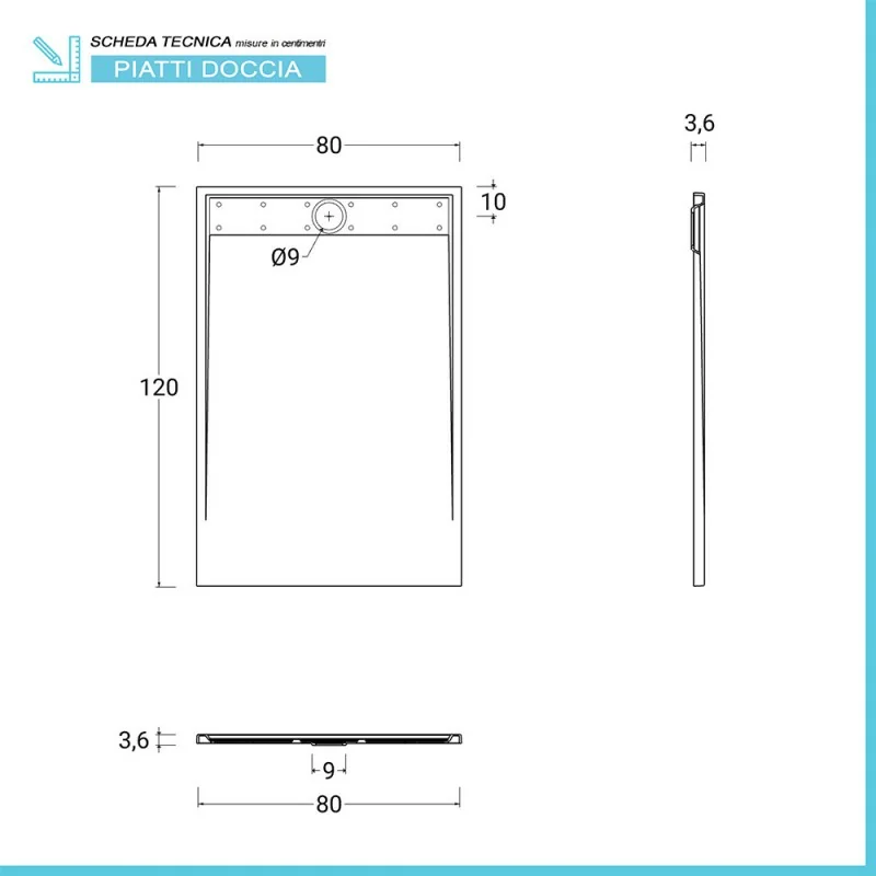 Piatto doccia in appoggio o filo pavimento con spessore 3 cm e canalina di scarico