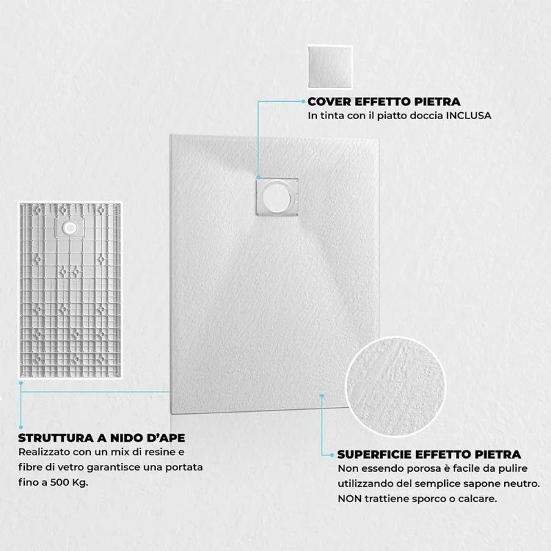 Piatto doccia 80x80 semicircolare bianco pietra in resina riducibile Agorà
