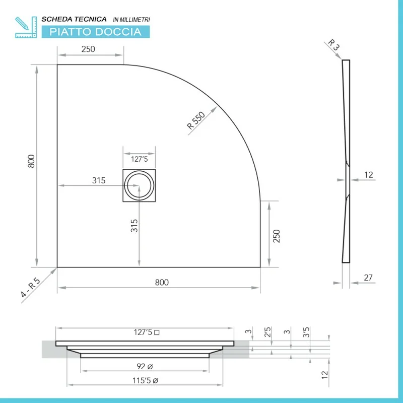 Piatto doccia semicircolare caratteristiche tecniche: