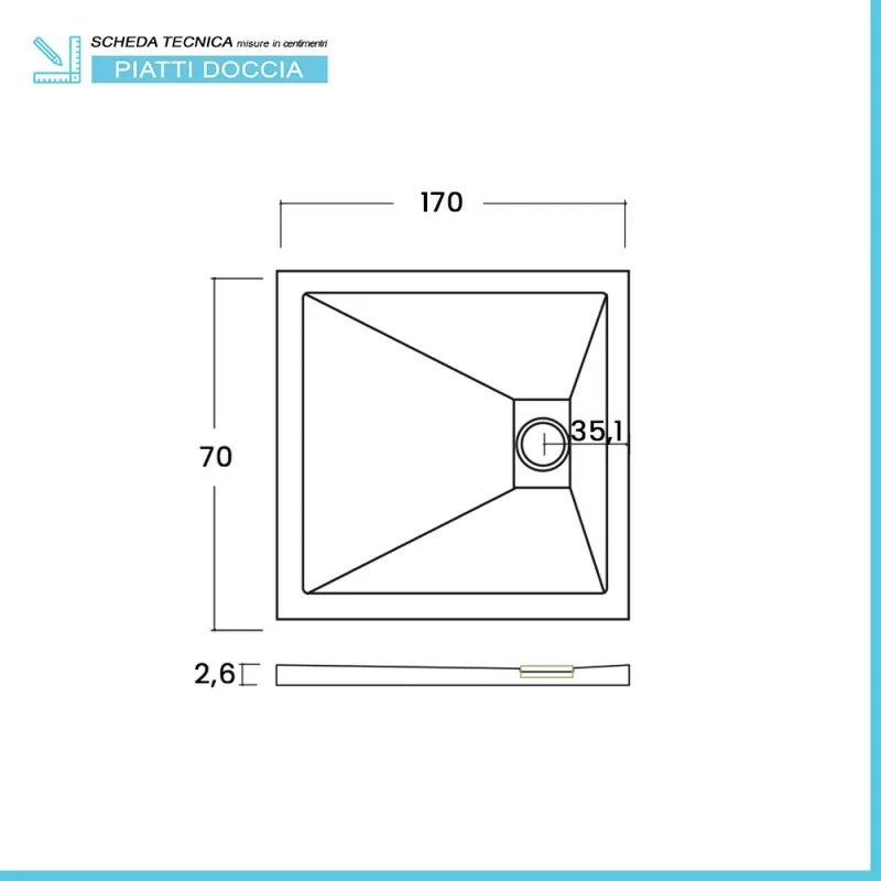Piatto doccia in appoggio o filo pavimento con spessore slim 3 cm,riducibile su misura