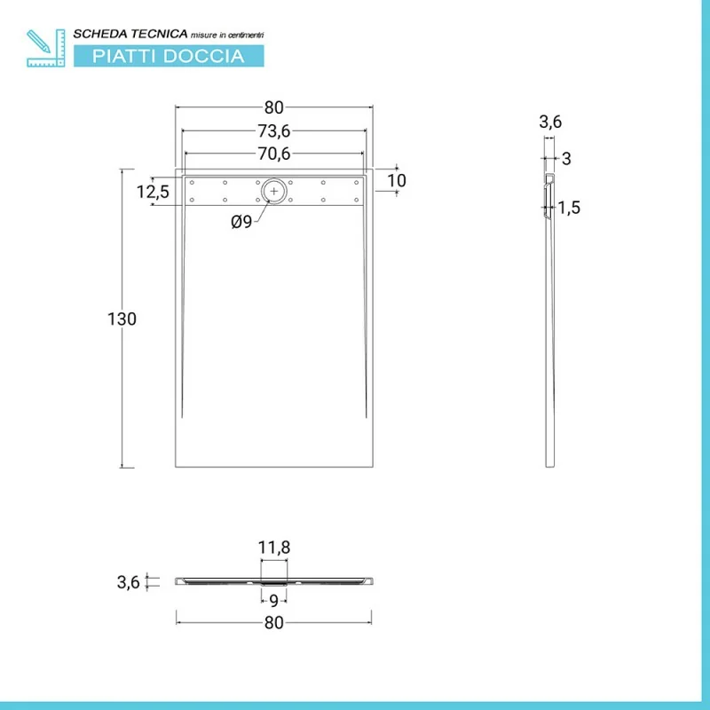 Piatto doccia 80x130 cm caratteristiche tecniche: