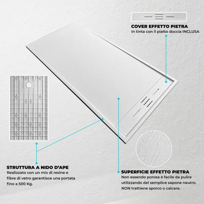 Piatto doccia 80x130 bianco pietra in resina riducibile con canalina Argo