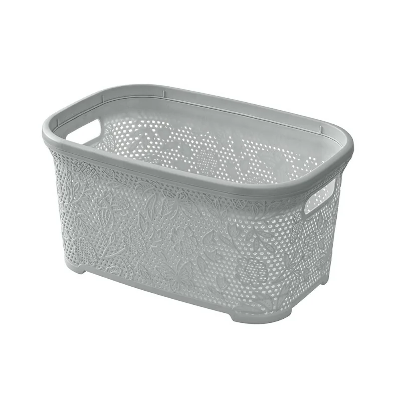 Cesta porta biancheria moderna con capienza 27 lt in plastica grigia con intarsi floreali
