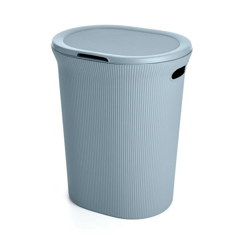 Colori tenui e design con ondulazioni verticali caratterizzano il nuovo cesto portabiancheria, dotato di apposito coperchio e fori laterali che assicura una facile impugnatura e un semplice trasporto anche a pieno carico.