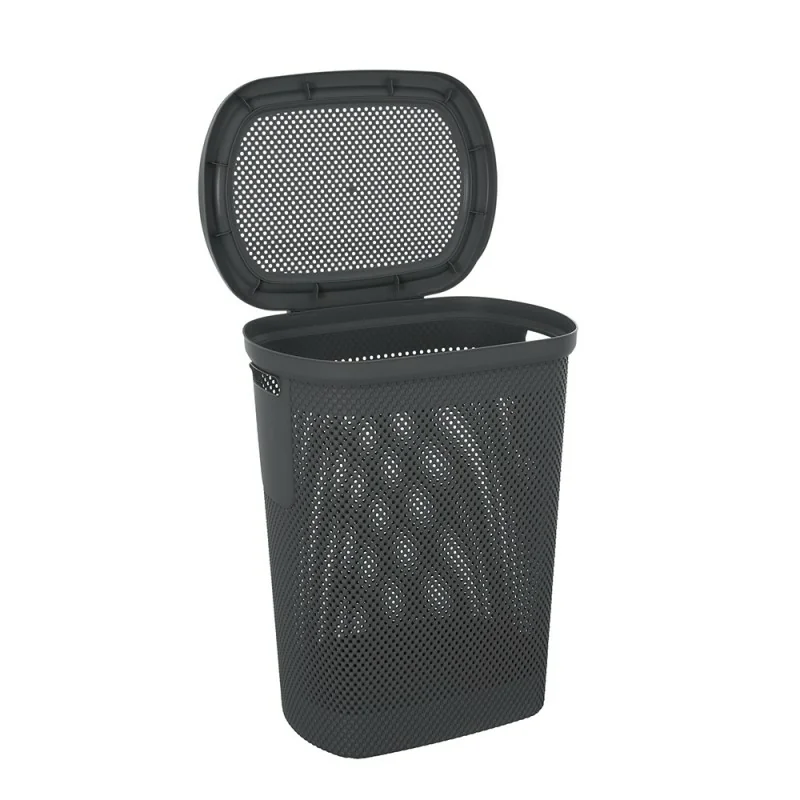 Contenitore per biancheria sporca Kamala grigio scuro con coperchio traforato
