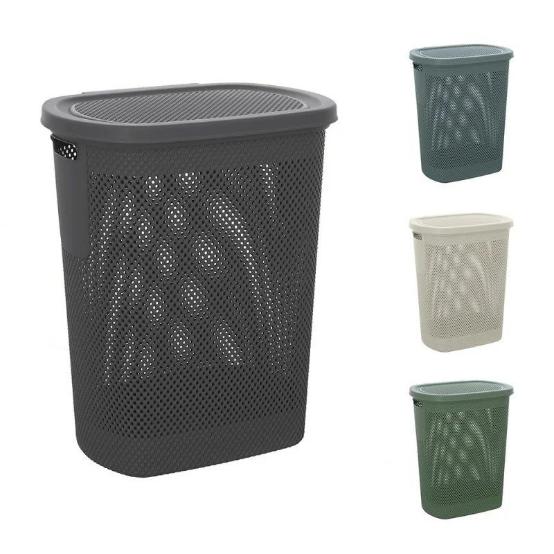 Portabiancheria con coperchio in plastica grigia scuro 58lt Kamala Scheda tecnica Portabiancheria con coperchio in plastica grigia scuro 58lt Kamala Coperchio del Portabiancheria in plastica grigia scuro 58lt Kamala Colorazioni Portabiancheria con coperchio 58lt Kamala
