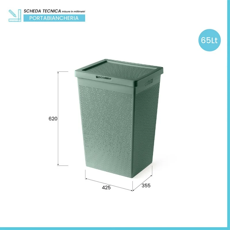 Cesta portabiancheria  65 lt verde salvia in plastica riciclata Scheda tecnica Cesta portabiancheria  65 lt verde salvia in plastica riciclata Cesta portabiancheria  65 lt verde salvia in plastica riciclata