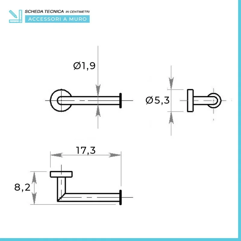 • Dimensione portarotolo:L  17.3 x p 8.2 x H 1.9 cm