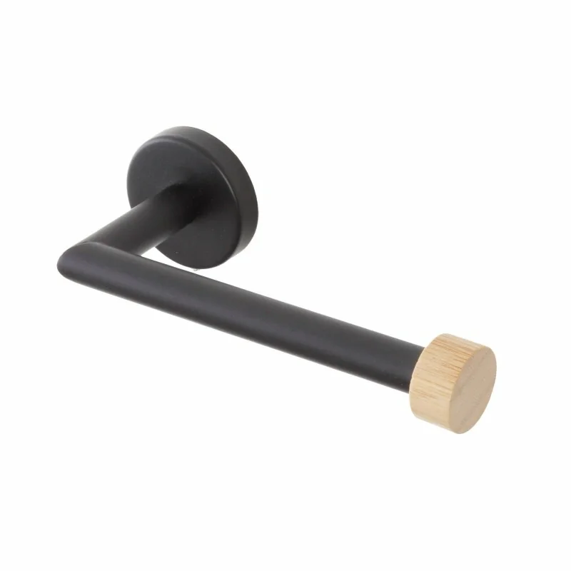Portarotolo carta igienica – linea Haiti in acciaio nero e bambù naturale fissaggio a parete