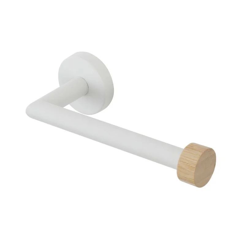 Portarotolo carta igienica – linea Haiti in acciaio bianco e bambù naturale fissaggio a parete