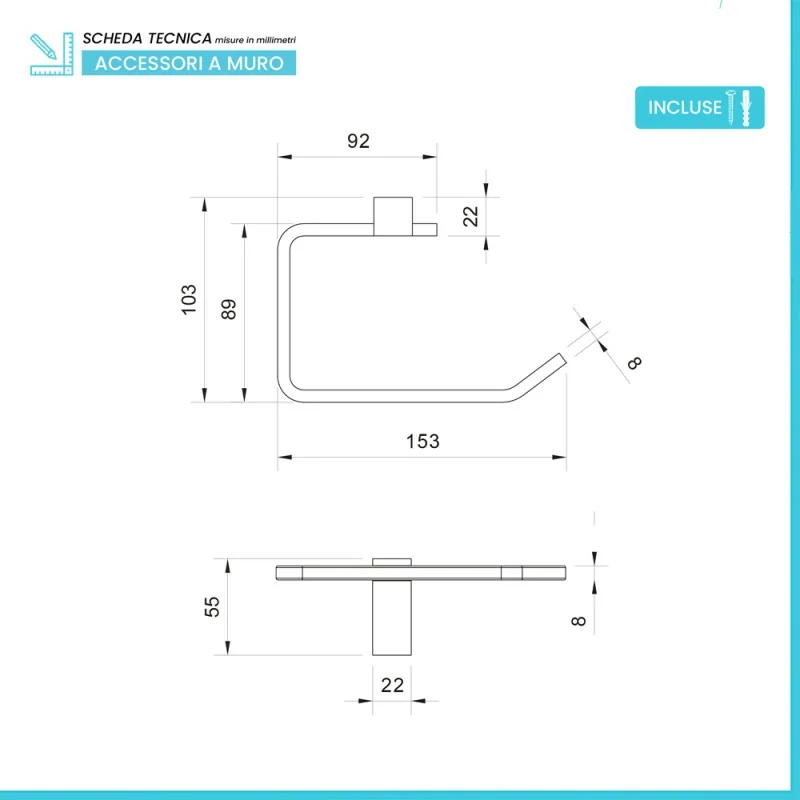 Porta rotolo a muro in acciaio cromato Unica Scheda tecnica Porta rotolo a muro in acciaio cromato Unica Porta rotolo a muro in acciaio cromato Unica