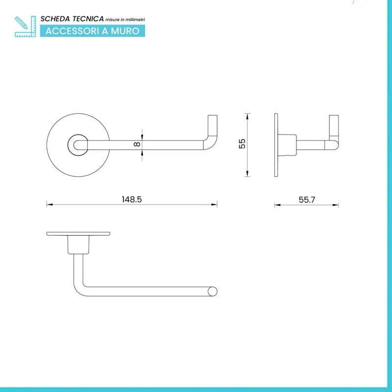 Porta rotolo a muro con doppio fissaggio caratteristiche tecniche: