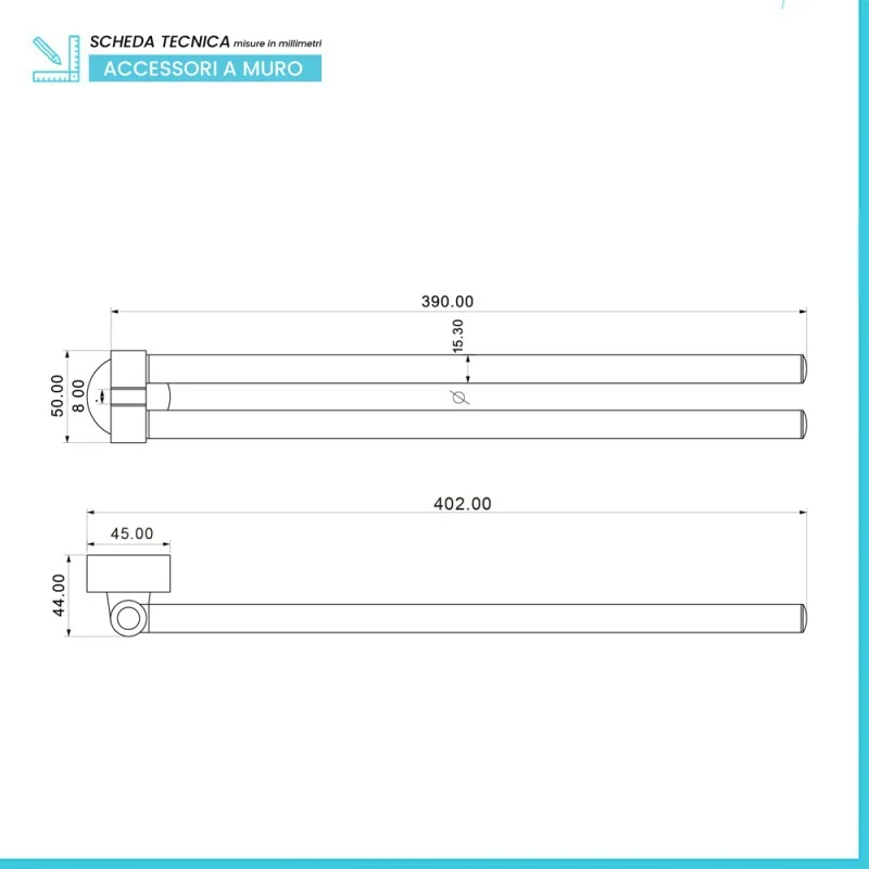 • Tipologia: barra porta asciugamani a snodo;