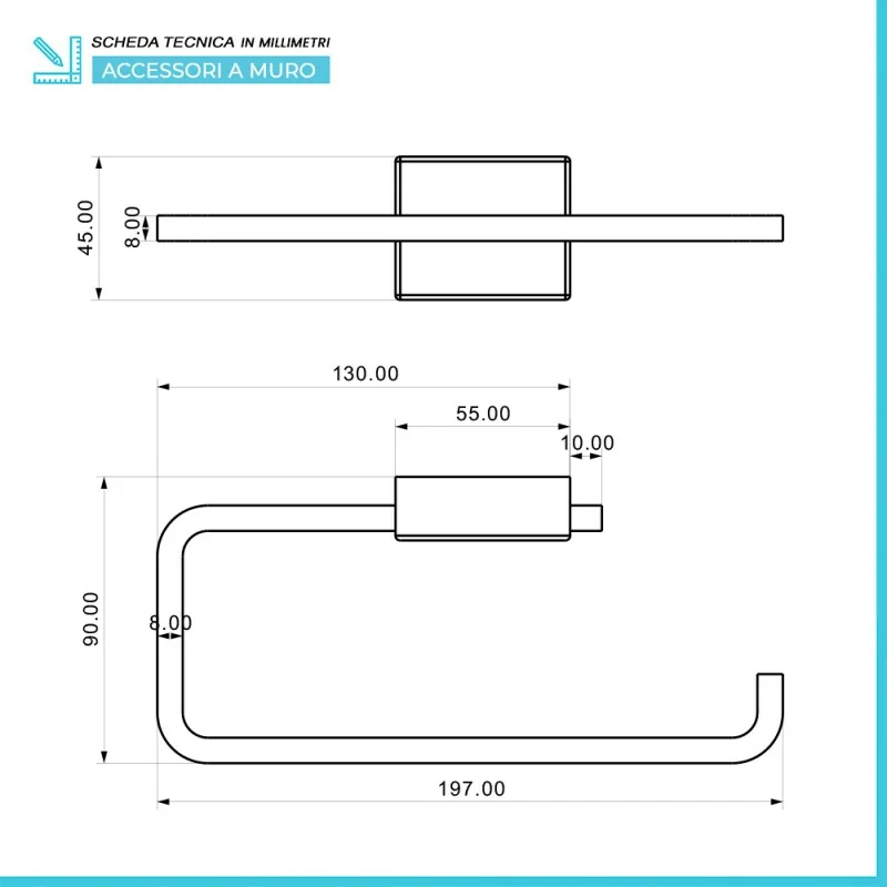 Porta salviette a muro con doppio fissaggio caratteristiche tecniche: