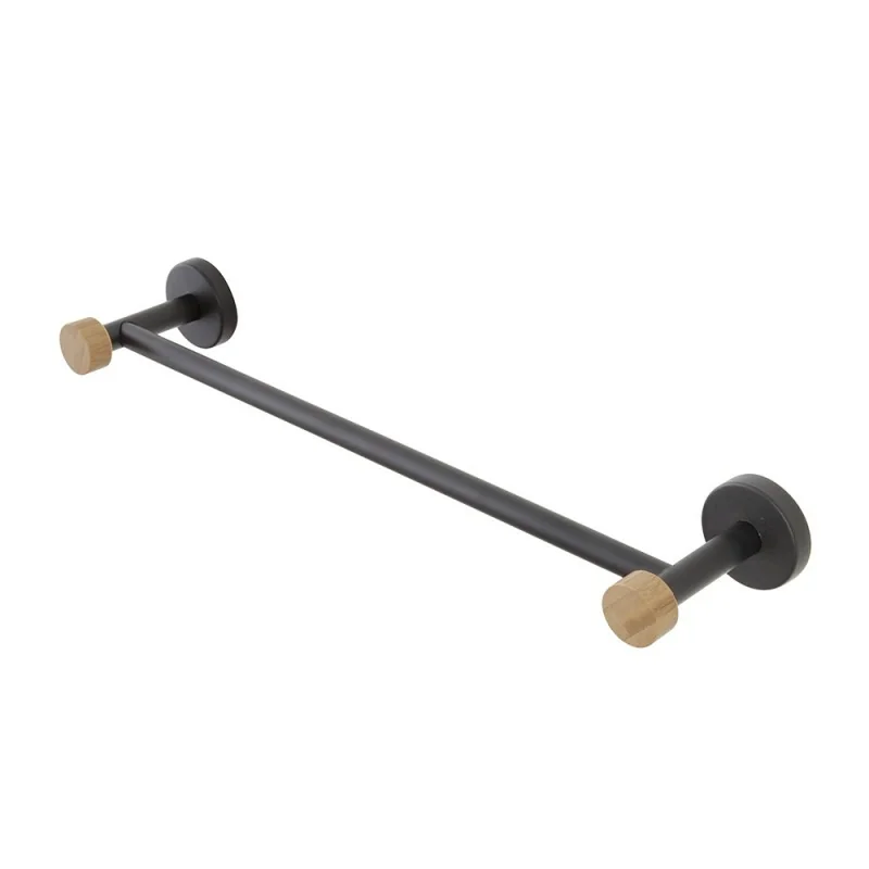 Porta asciugamani a parete 40 cm nero in acciaio e bambù Haiti
