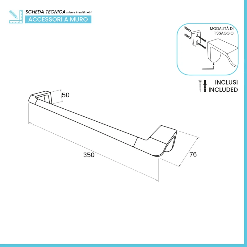 Porta asciugamani diritto a parete caratteristiche tecniche: