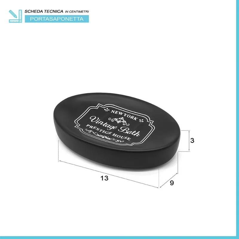 Portasaponetta in ceramica nera con stampe a contrasto bianche vintage Porta saponetta in ceramica nera con stampe a contrasto bianche vintage Scheda tecnica portasaponetta in ceramica nera con stampe a contrasto bianche vintage Porta sapone in ceramica nera con stampe a contrasto bianche vintage Portasapone solido in ceramica nera con stampe a contrasto bianche vintage