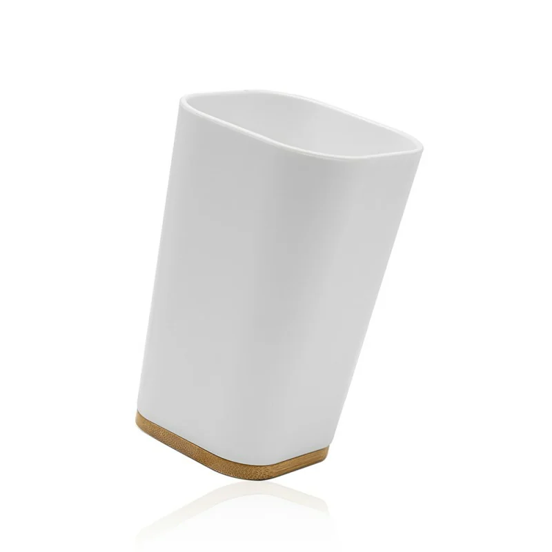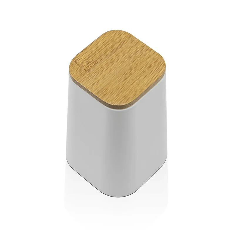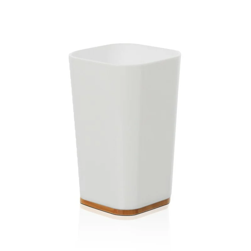 Porta spazzolino da appoggio in finitura bianca opaca con dettagli in bambù