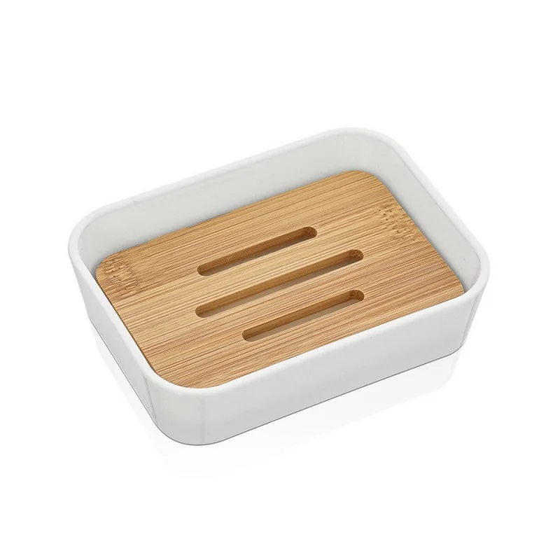Portasapone in finitura bianca opaca con inserti in bambù Portasapone in finitura bianca opaca con inserti in bamboo Scheda tecnica portasaponetta in finitura bianca opaca con inserti in bambù Porta sapone bianco opaco con dettagli in bambù Porta saponetta in plastica bianca opaca con dettaglio in legno di bambù Porta sapone solido in plastica bianca e bamboo Set completo in finitura bianca opaca con dettagli in bamboo
