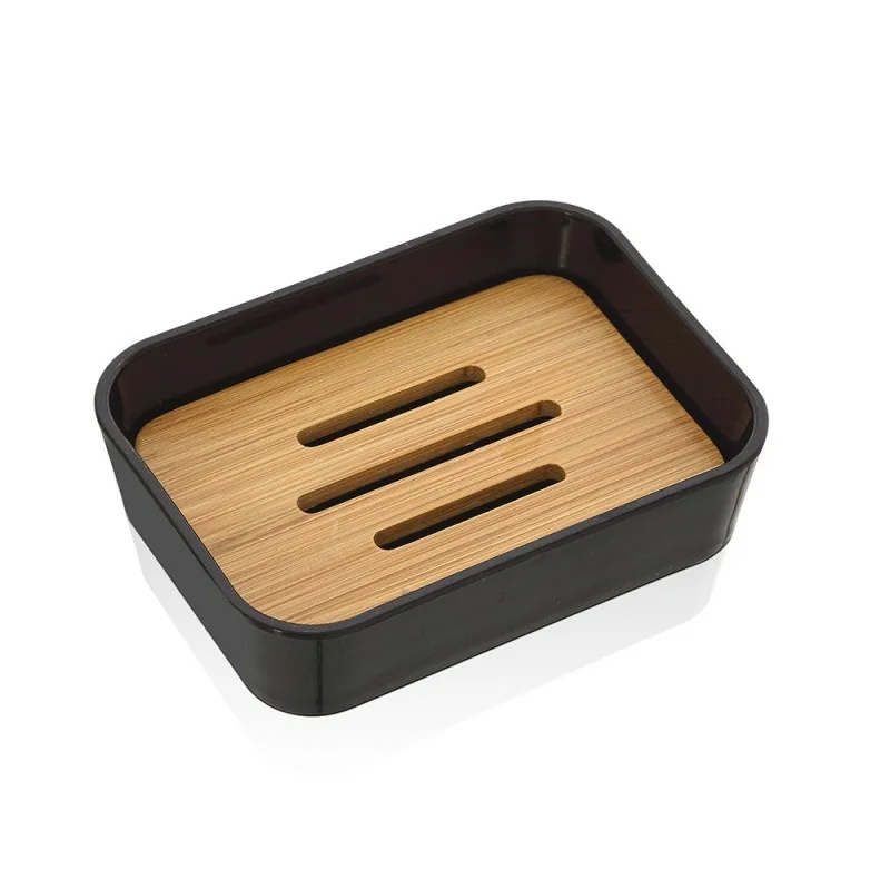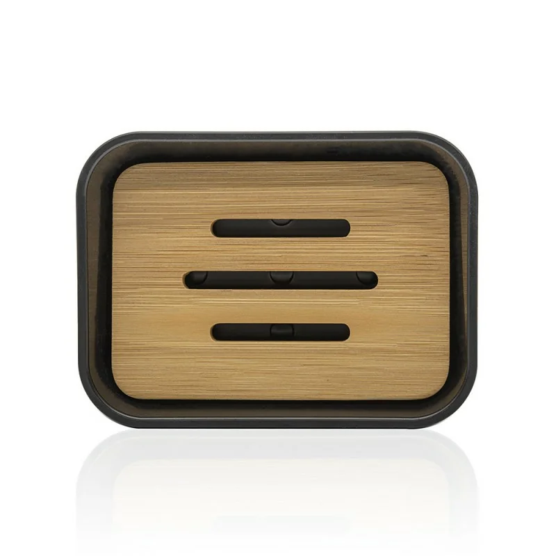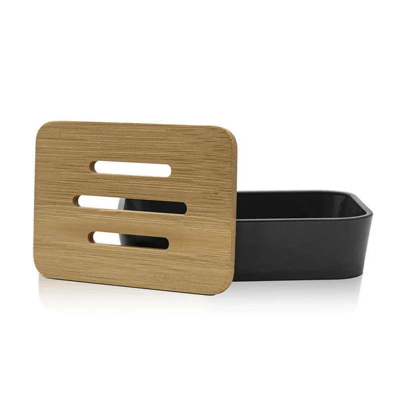 Portasaponetta in finitura nera opaca con inserti in bambù