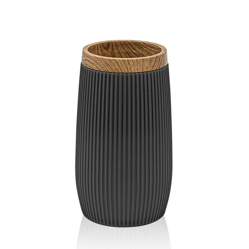 Porta spazzolino da denti Nero con dettagli effetto legno serie Blob